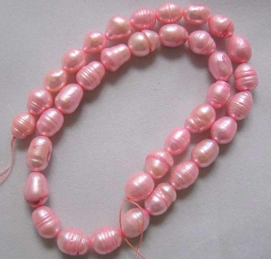 Sötvattenspärlor 0 kr 40 kr Rosa risformade sötvattenspärlor, något ojämn kvalité, se bild ca 8 mm långa.Sälljs per sträng ca 35 cmArtnr: P-PS-03